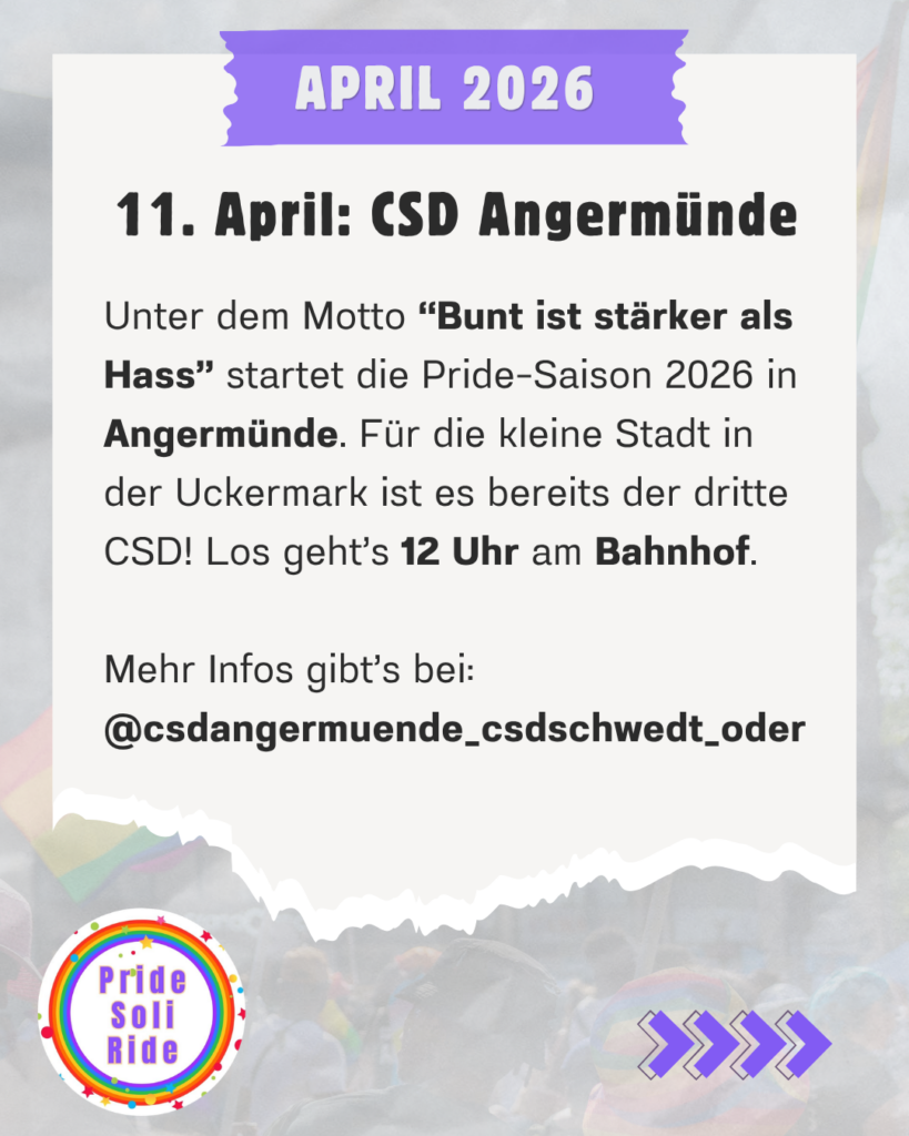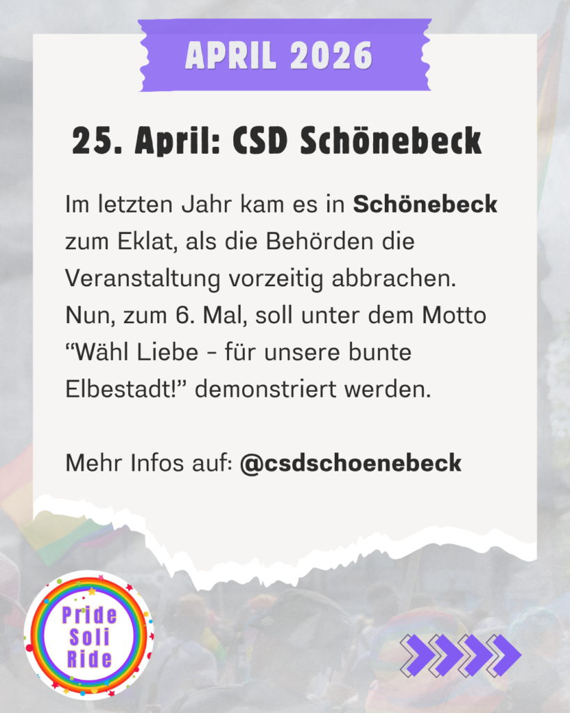 Zum CSD Schönebeck gibt es eine gemeinsame Bus-Anreise – schaut für mehr Infos auf deren IG-Kanal @csdschoenebeck oder hier beim Bassliner.